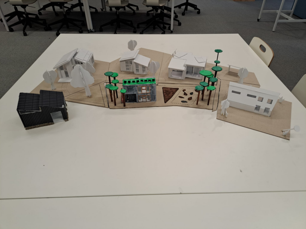 Als groep hebben we ons tiny house uitgewerkt in een maquette, hiermee kregen we een mooi beeld van hoe het het park eruit zou komen te zien. Ieder van ons heeft zijn eigen tiny house uitgewerkt.