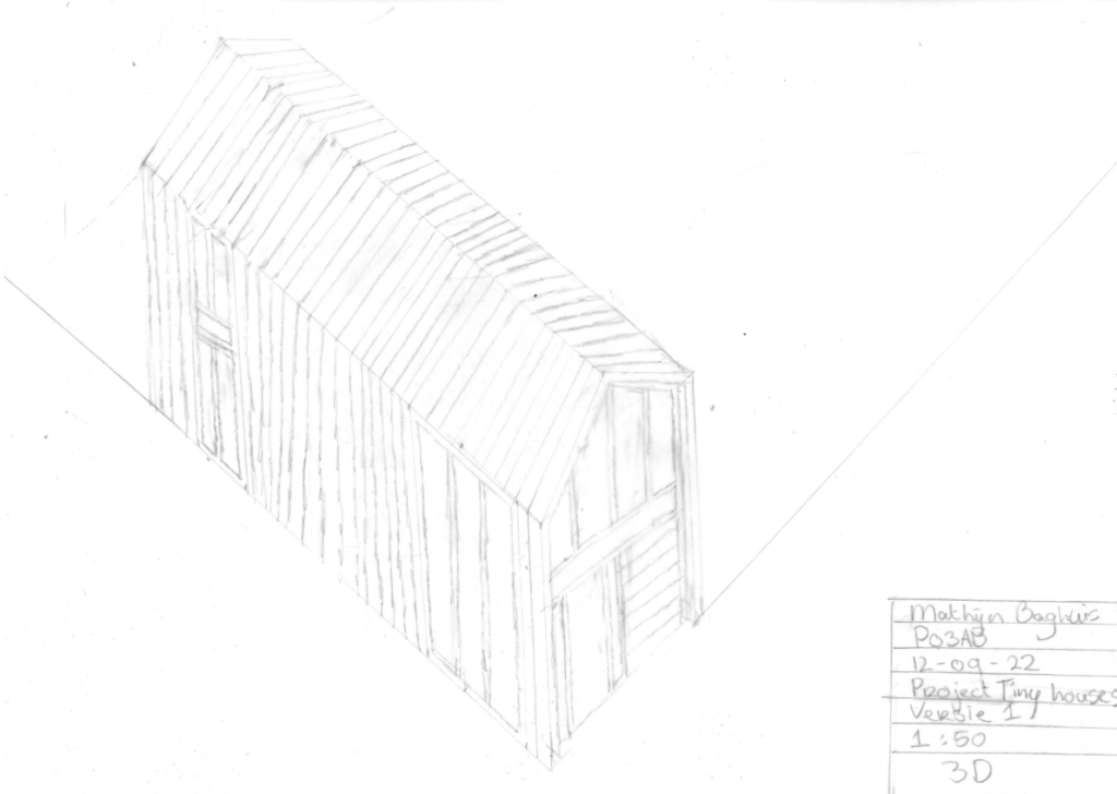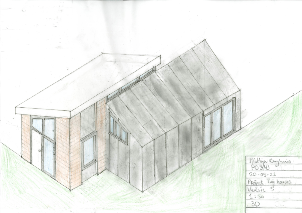 In dit project moet ik een tiny house ontwerpen. De doelen van dit project is om het zo duurzaam mogelijk te maken, daarom heb ik samen met andere een terrein gecreëerd waar wij allemaal ons tiny house op neer zetten. Op dit terrein staan een aantal gezamenlijke voorzieningen. In dit project werk ik voornamelijk uit op papier en in Revit 2022.