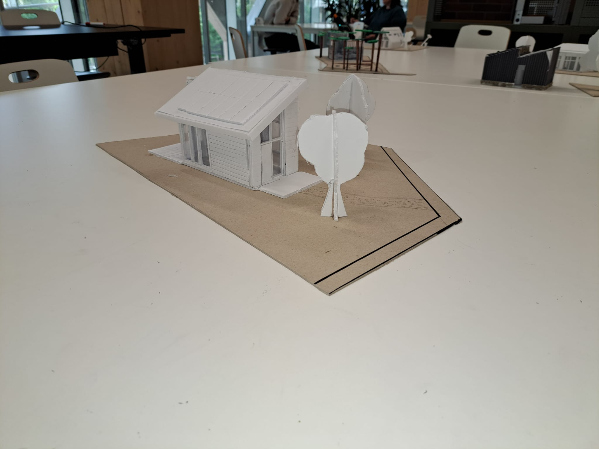 Als groep hebben we ons tiny house uitgewerkt in een maquette, hiermee kregen we een mooi beeld van hoe het het park eruit zou komen te zien. Ieder van ons heeft zijn eigen tiny house uitgewerkt.