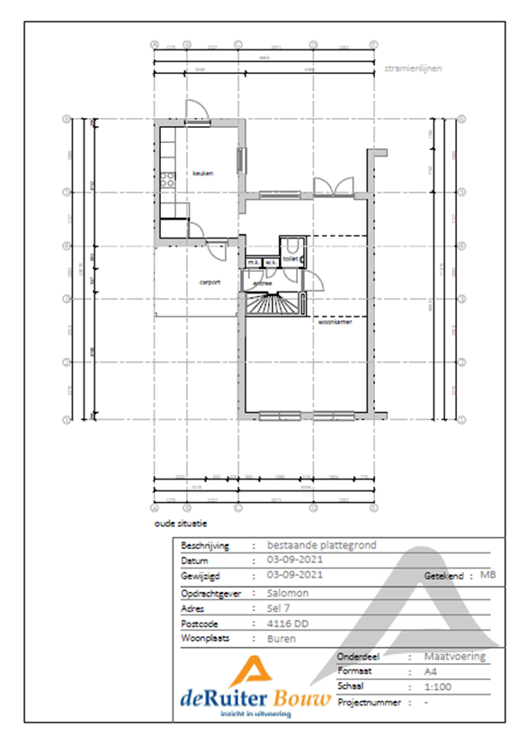 In deze opdracht moet ik werktekeningen maken van een lopend project van de Ruiter bouw. Ik heb er voor gekozen om de aanbouw van proeve 1 uit te werken tot werktekeningen.