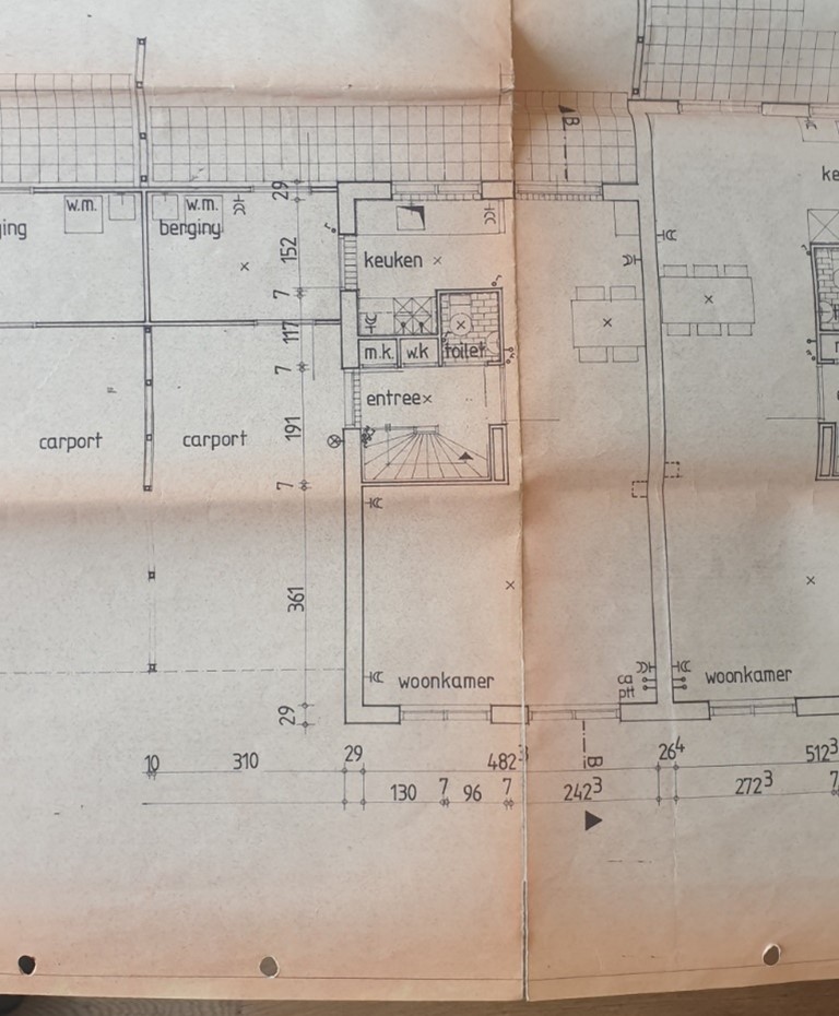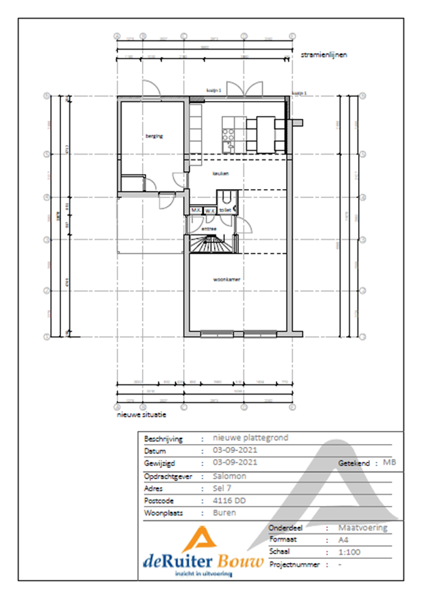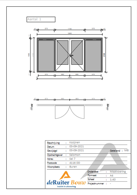 In de aanbouw komt er een kozijn te zitten, om deze te kunnen maken moet er een kozijnmerken gemaakt worden. Met deze tekening kan de kozijnenmaker het kozijn alvast maken zodat dat straks niet meer op de locatie zelf hoeft.